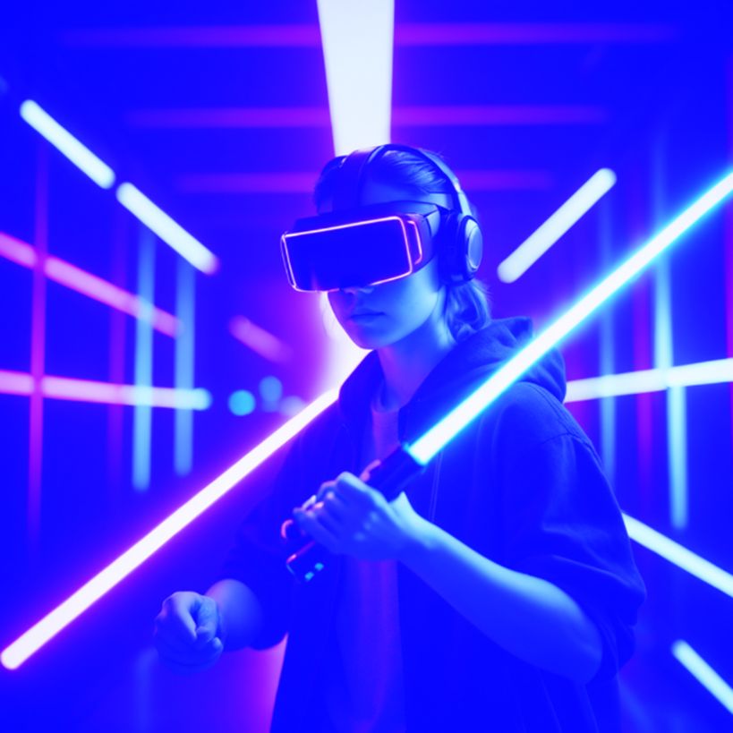 Mit der VR-Brille spielen wir verschiedene Spiele, teilweise im Single- und teilweise im Multiplayer. Darunter sind Rhythmik-Spiele mit Musik und Laserschwertern und Teamspiele mit Godzilla, Robotern und anderen schrägen Figuren. Ob groß oder klein, jung oder alt, Easy oder Expert, das Bib-Team freut sich über alle, die zum Spielen vorbeikommen.