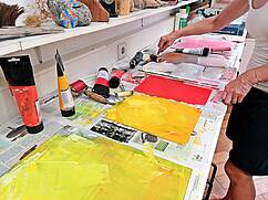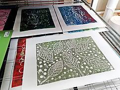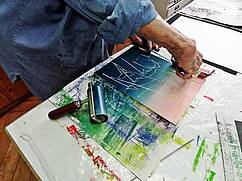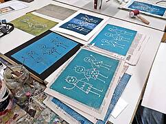 "Experimenteller Holzschnitt" mit der Dozentin Monika Schaber statt und 2023 bot unsere Dozentin Petra Friedrich ein Intensivwochenende zum Thema "Expermentelle Tuschmalerei" an. An einem langen Samstag Ende Juni fand ein Druck-Workshop, angeleitet vom Kunstschulleiter Ali Schüler, statt. Zehn Mitglieder des Fördervereins nutzten dieses Angebot. Dabei entstanden zahlreiche Drucke mit vorwiegend experimentellem Charakter.